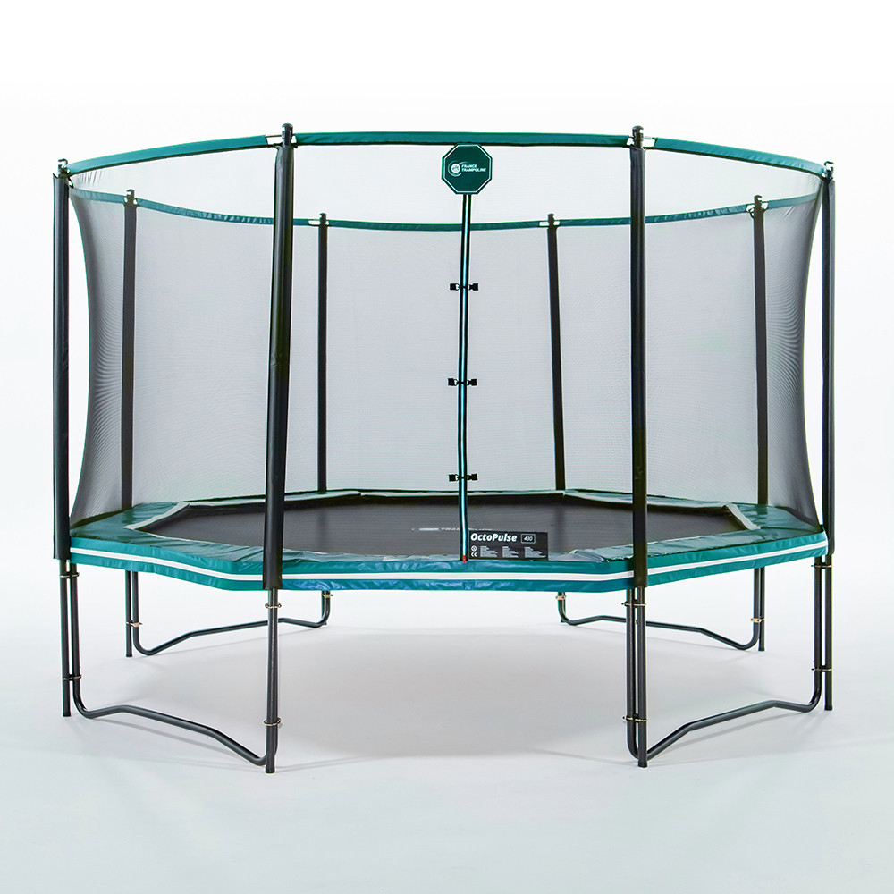 Cama elástica Octopulse 390 con red de seguridad. Una cama elástica que combina potencia para los atletas y comodidad para la familia. Su forma os permitirá conectar saltos técnicos sin necesidad de estar centrado en la tela de salto.