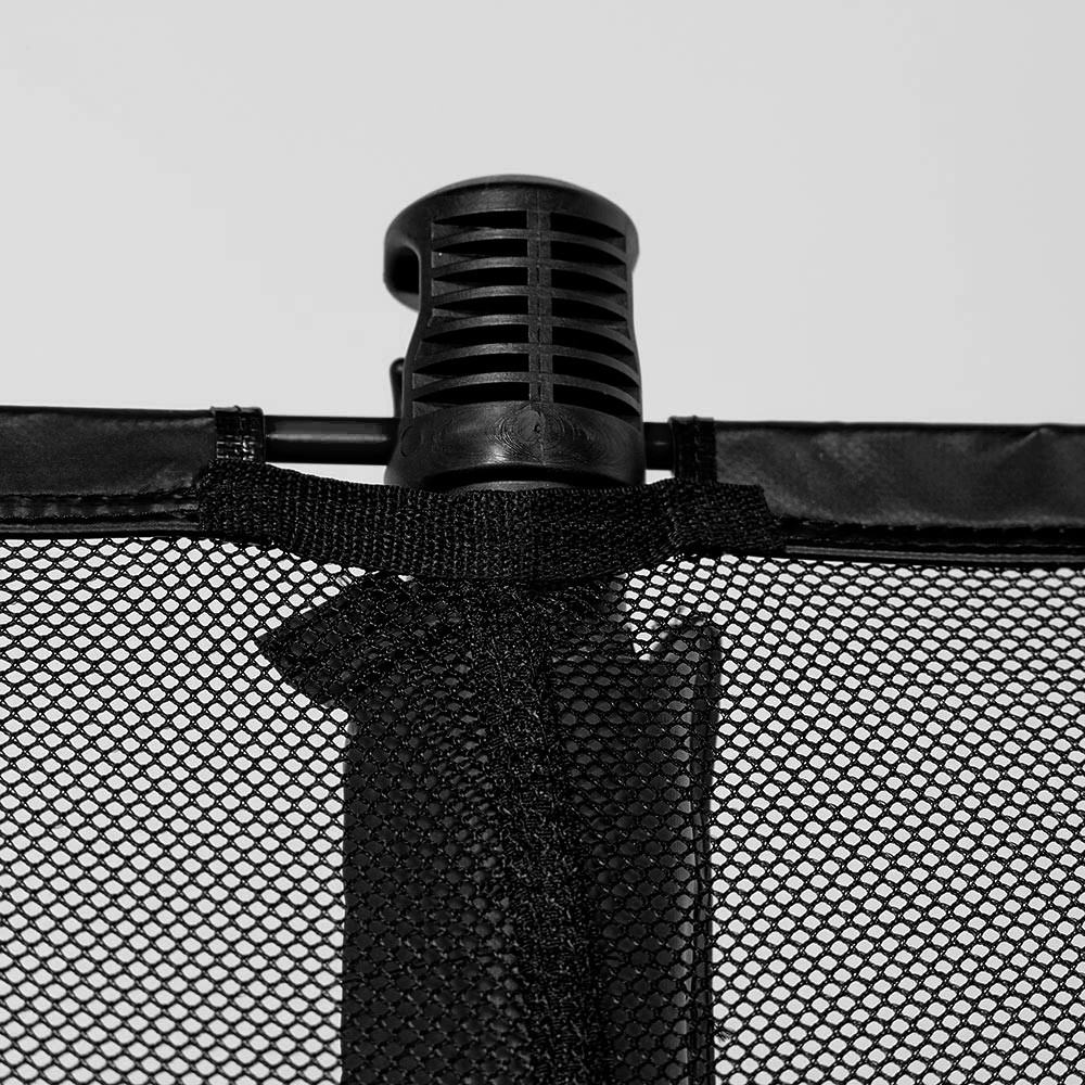 - La red de protección de la Booster 360 permite impedir a los saltadores caerse por fuera de la cama elástica. Está sujeta por 8 postes que van hasta el suelo. La parte superior de la red está tensionada gracias a arcos en fibra de vidrio. Las mallas están muy apretadas para que los niños no puedan engancharse los dedos.