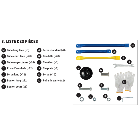 Seleccione en el menú desplegable la pieza de repuesto que busca para su cúpula de escalada de 1,80 m.