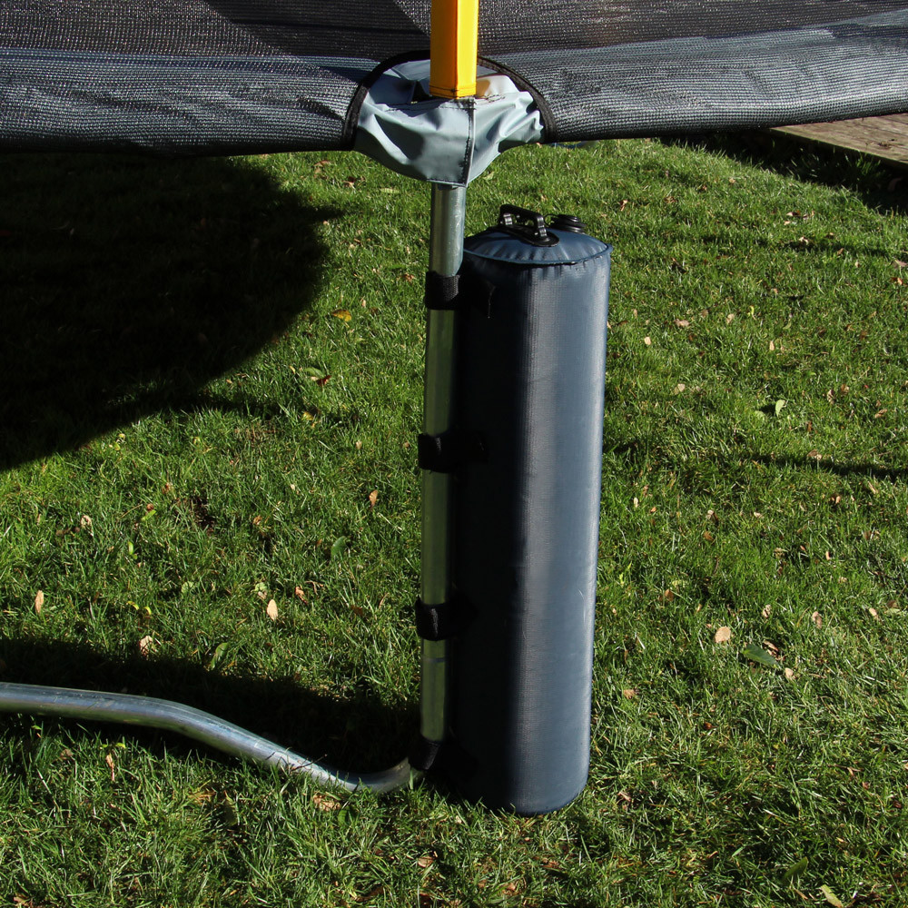 Si vivís en una zona sometida a fuertes vientos, France Trampoline os recomienda reforzar el anclaje de vuestra cama elástica con esta bolsa de lastre cilíndrica que hay que rellenar con agua o arena para obtener un mayor peso de lastre.