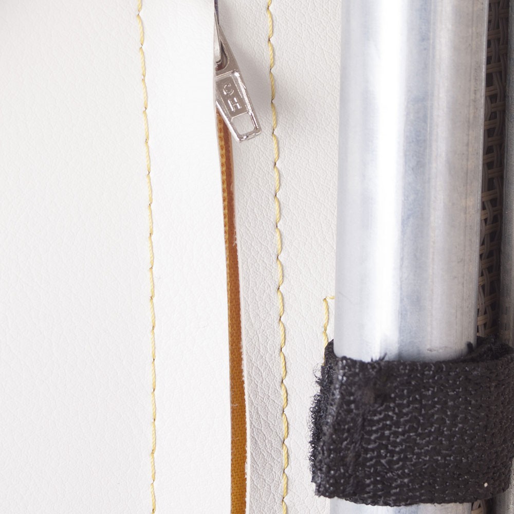 - Desde un punto de vista de la seguridad, la cama elástica Design cuadrada dispone de un cojín de protección de color beige o crudo con acabados muy cuidados para una apariencia y un mantenimiento de alta gama.