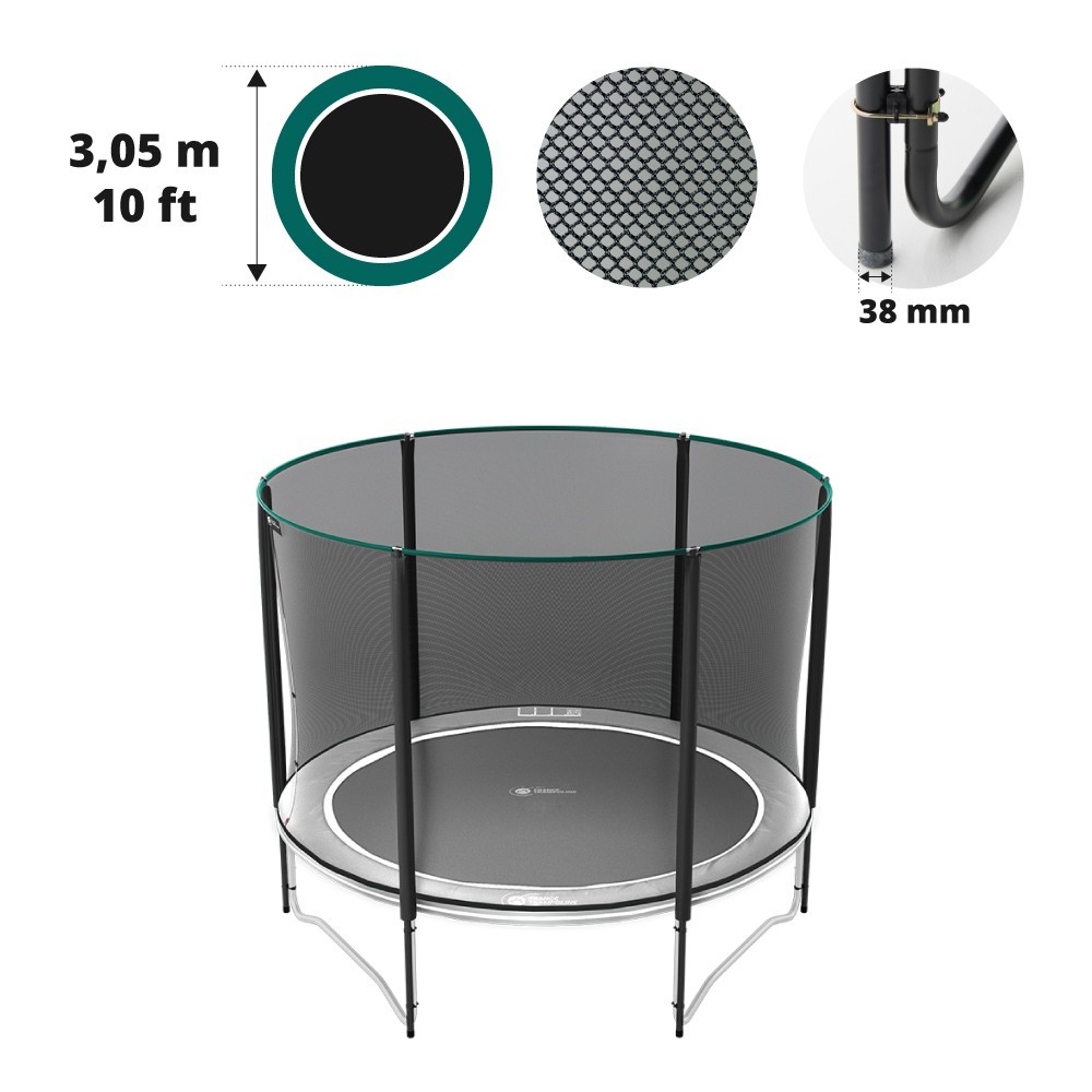 ¡Grandes saltos en una cama elástica, claro, pero con toda seguridad! Elemento indispensable para la seguridad de los saltadores, esta red de protección Premium negra os permitirá reemplazar vuestro antiguo modelo sin uso sin tener que cambiar vuestra cama elástica. Esta red completa se vende con sus postes de sujeción, los manguitos de protección y los tornillos necesarios para su instalación.