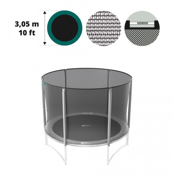 Red de protección universal para cama elástica de 3 m / Ø 305 con sujeción mediante arco de fibra de vidrio.