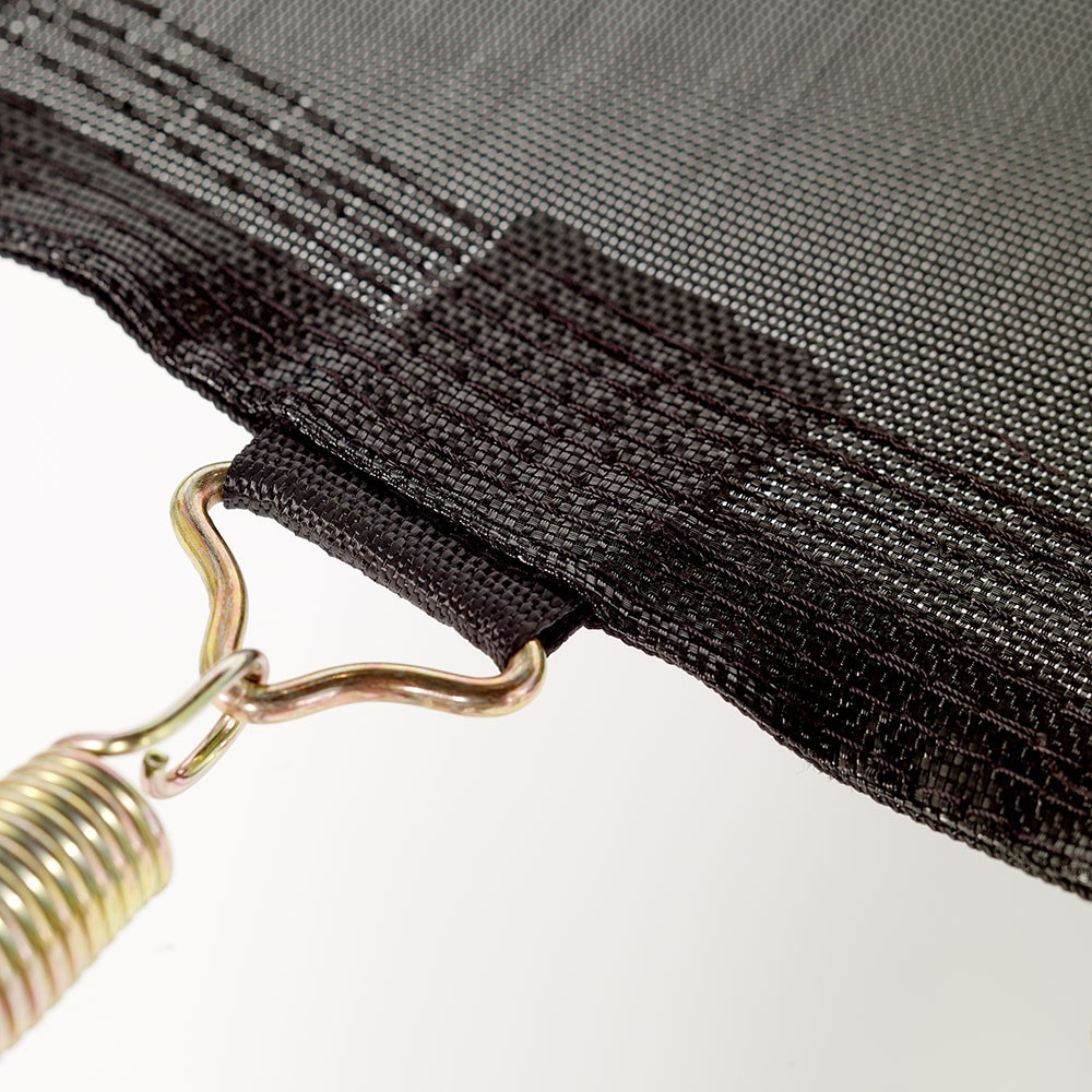 • Está reforzada por 6 líneas de costura y una banda de refuerzo en todo el borde que sujetan los puntos de fijación para los resortes. Los soportes triangulares fabricados en acero galvanizado tienen una alta resistencia a la corrosión y garantizan la solidez de este artículo.